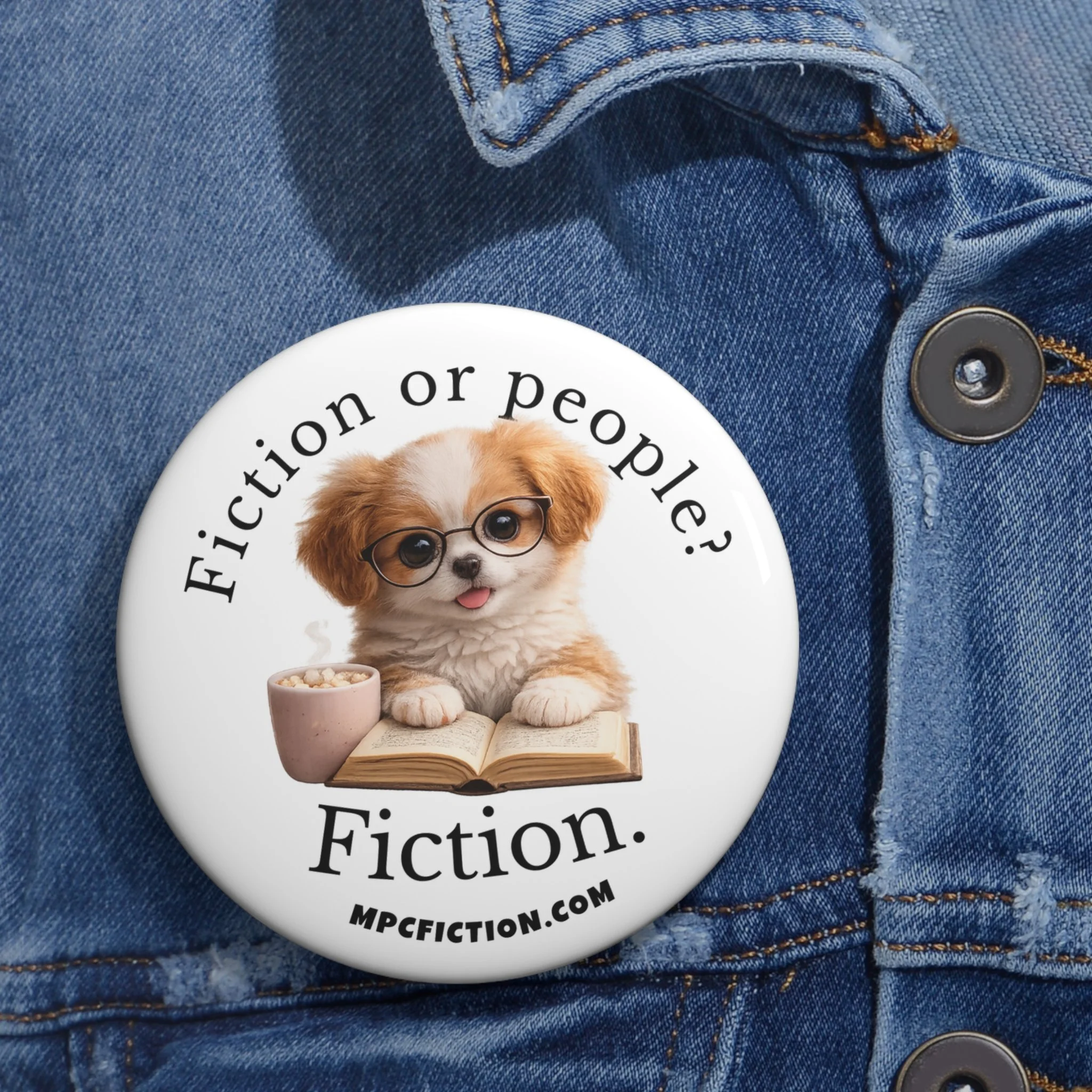 Add a warm, literary accent to your everyday accessories with this MPCfiction exclusive pin button, made for book lovers who will always pick the novel first. With charming red panda artwork, round glasses, an open book, and a quote readers instantly understand, this button brings a playful bookish vibe to whatever you pin it on.
