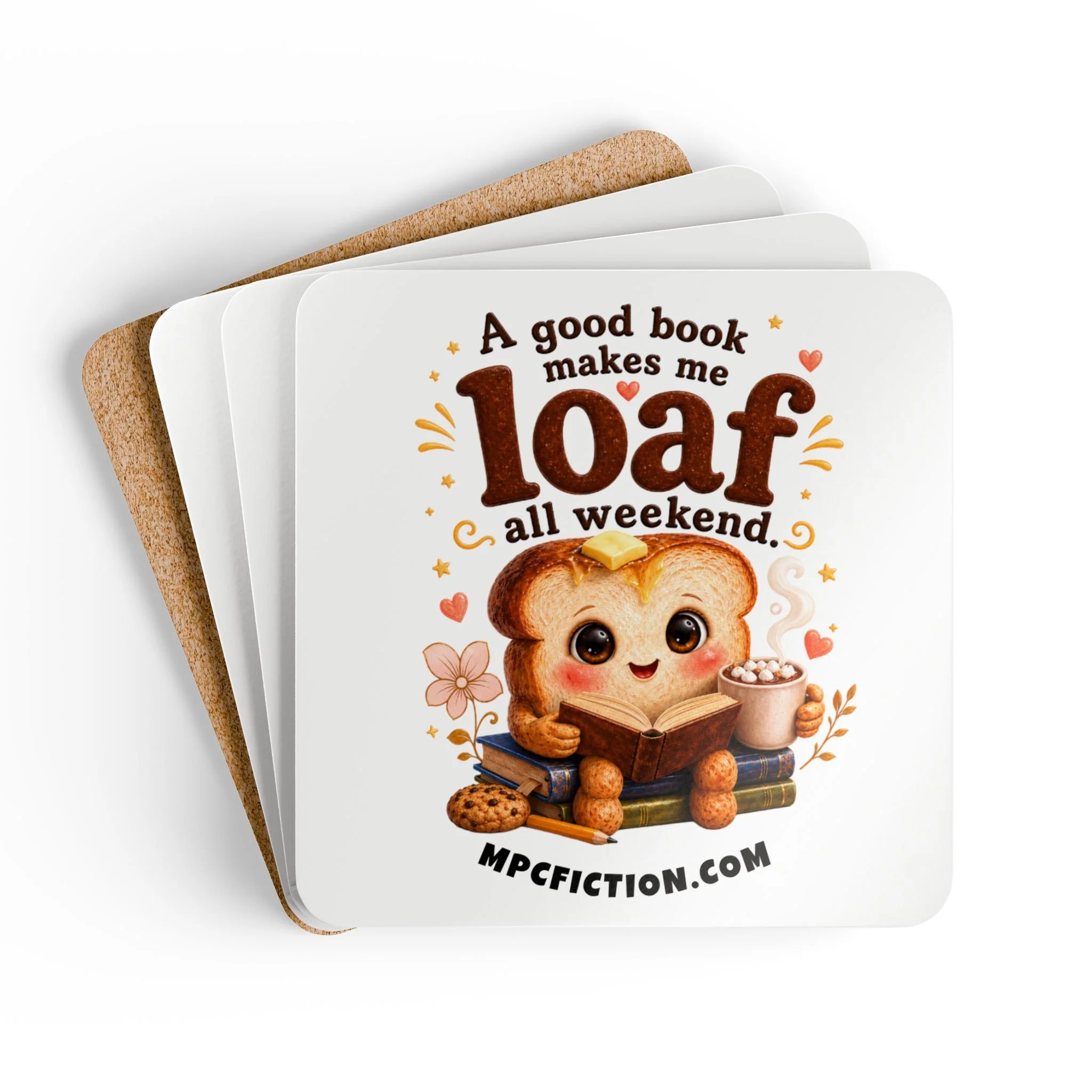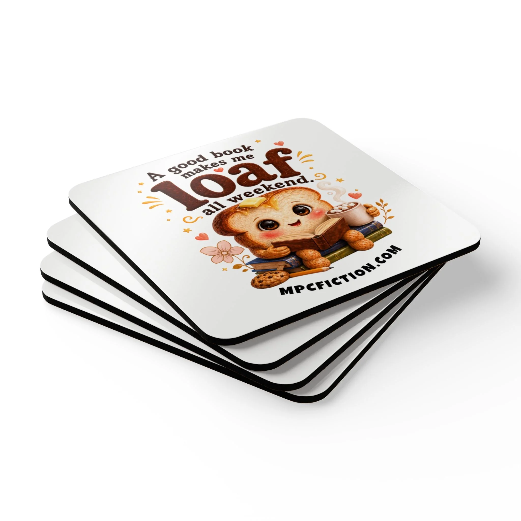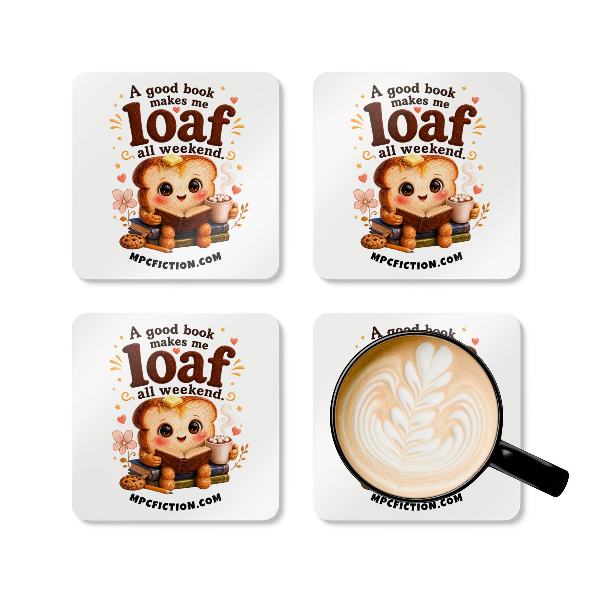 Good Book Loaf Coaster Set | Funny Book Lover Gift for Readers | Cute Toast Reading Drink Coasters