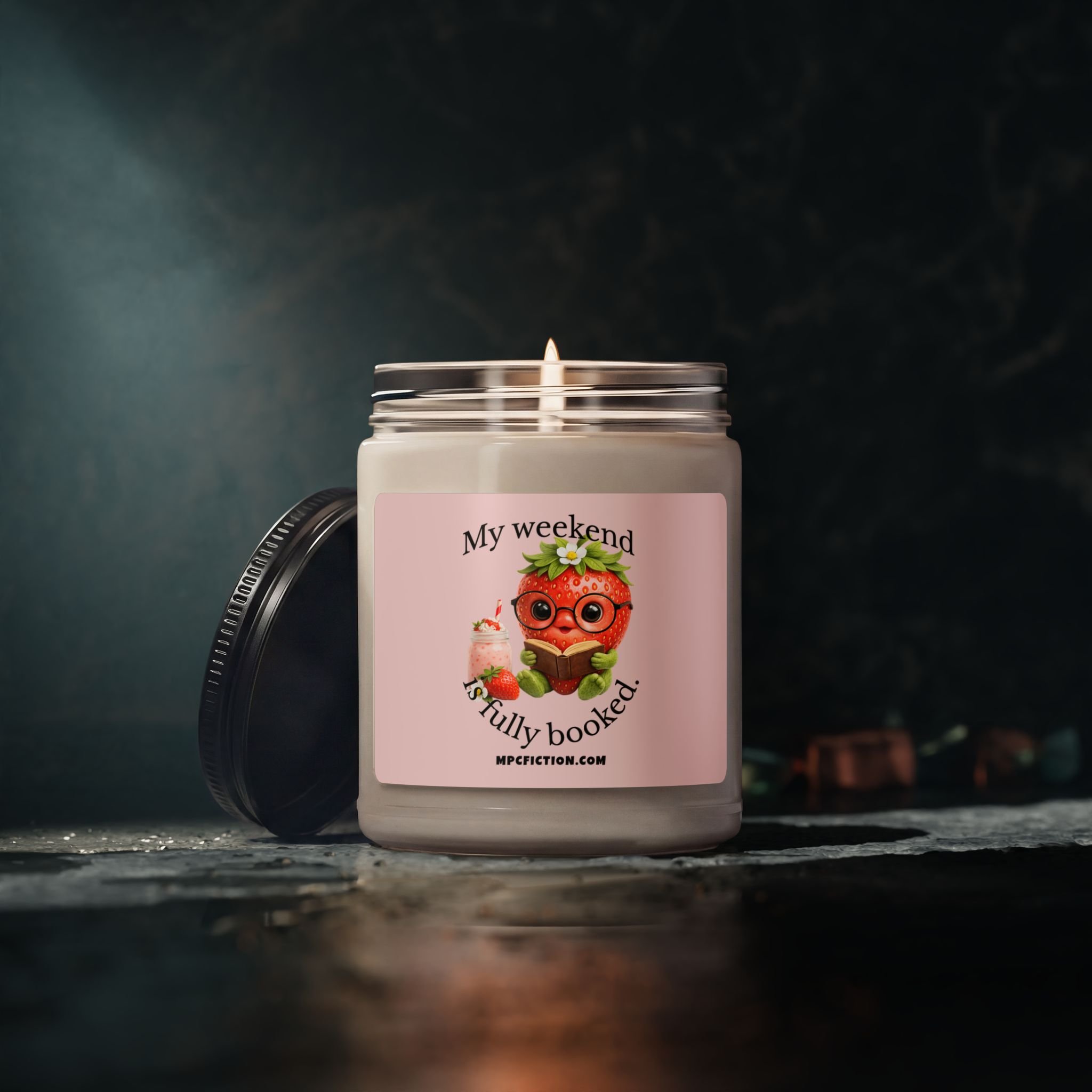 Bring a warm, bookish glow to your reading routine with this MPCfiction exclusive scented candle, made for readers who are proudly just here for the romance. Featuring adorable MPCfiction exclusive characters and a quote book lovers instantly understand, this candle adds a soft literary touch to shelves, side tables, desks, and reading nooks.